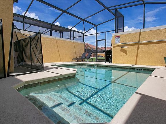 Vacation rental property or second home. Gorgeous private pool townhome located in the Gated Resort Community of Paradise Palms. This water view townhome comes fully furnished. This 4-beds, 3-baths townhome features an open floor plan with a large secondary bedroom and bathroom on the first floor. The Kitchen features a kitchen bar, tons of counter space, maple cabinets, granite countertops and stainless steel appliances. The second floor features the Owner Suite with two secondary bedrooms, large walk-in closet, and a laundry room. The private pool deck has been extended to provide ample space for relaxing & entertaining, with nothing behind you but a lake ensures the utmost privacy. Paradise Palms is one of the hottest resorts in the Disney area and a top choice for travelers. Paradise Palms Resort features some of the best vacation and resort-style amenities, including a stunning 9,500 sq. ft. Clubhouse featuring sauna, movie theatre, game room, internet lounge, basketball and volleyball courts, lighted tennis courts, state-of-the-art fitness center, resort-style swimming pool with waterfall, grotto and spa, pool slide, tiki bar and grill, splash pad, and much more. HOA fee includes resort amenities & staff, plus townhome cable, internet & phone, townhome's exterior care. Paradise Palms Resort is zoned for short term rental.