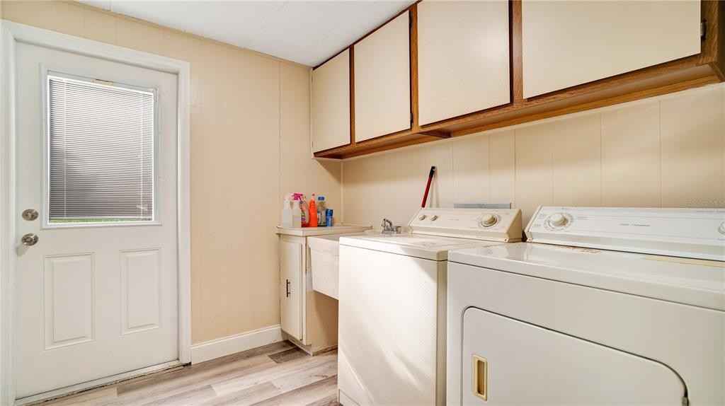 Well maintained and updated 2 bedroom 2 bath home in beautiful Zellwood Station. This is a 55+ Golfing Community with a guard gate, golf course, multiple pools, pickleball and tennis courts and a Restaurant with banquet facilities. The home reflects true homeowner pride with the following updates: vinyl flooring partial new sub flooring, new plumbing, upgraded light fixtures, renovated bathrooms, renovated kitchen, new stainless steel appliances, sprinkler system. Light, bright open floor plan with a detachable handicap ramp access, features a large Florida Room, which is open to the updated modern kitchen. The 2 large bedrooms have large walk-in closets. Conveniently located close to shopping, churches, medical facilities, restaurants and the 429 provides easy access to the attractions and airports. This home has nice sized kitchen and dining room with built in wall unit for extra storage. The large patio has a rooftop view of the area and wonderful evening sunsets. The guest bath has double entrance, from hall or the guest bedroom.