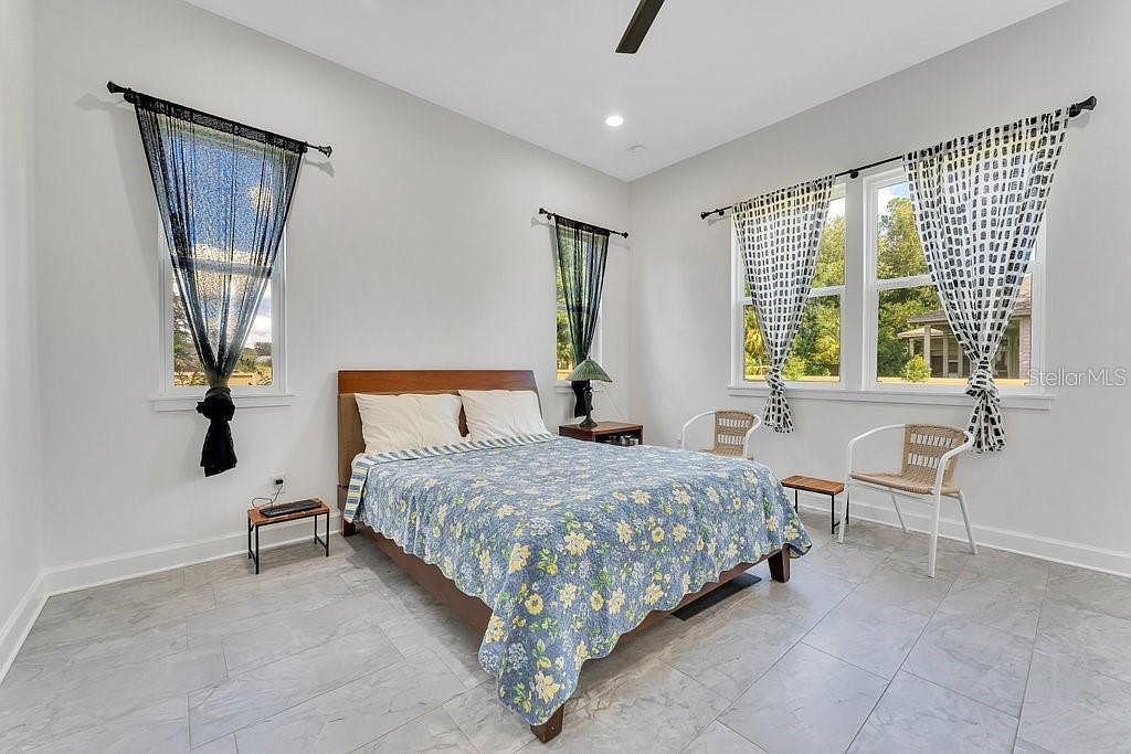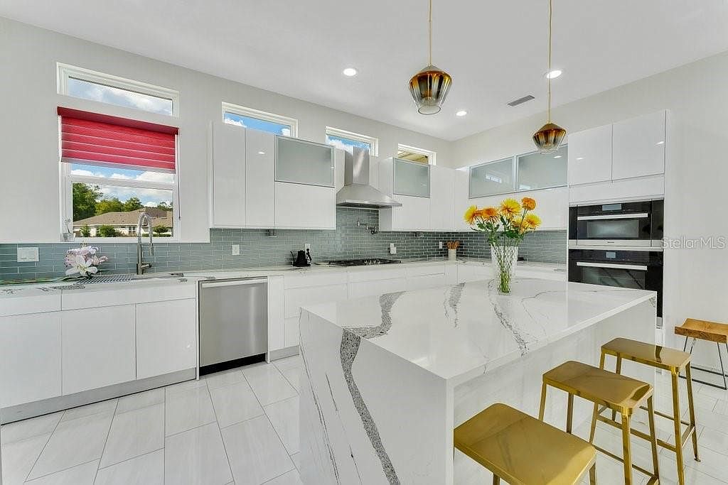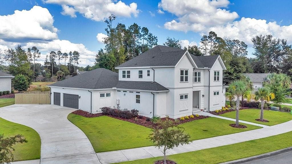EXECUTIVE HOME - Welcome to this stunning, luxurious, custom-built smart Pridgen Home in the heart of the Estates of Wild Plantation. The oversized estate with 5 bedrooms and 5.5 bathrooms, includes a separate guest quarter. The glass modern front doors welcome you into the formal living room featuring soaring ceilings, polished tile flooring throughout, and unique chandeliers. Once you make your way through the dedicated wine room with marvelous marble countertops, you'll enter the one-of-a-kind designer kitchen. The gourmet kitchen features top-of-the-line Designer Cambria Quartz countertops, custom Italian cabinetry, the highly desired and top-of-the-line German Miele appliances (steam oven, convection oven, 30-inch freezer/refrigerator, dishwasher), as well as a massive walk-in Butler Pantry. On the opposite side of the home, relax in the Owner's Retreat on the lower floor, featuring oversized glass French doors that open to the fenced backyard. The separate custom Master closet impresses with handcrafted shelving and soft-close drawers. The Master bathroom features a walk-in shower, freestanding tub, and double separate vanities, as well as the same Designer Cambria Quartz/custom floating Italian cabinets. The luxurious details continue through the home as each bathroom contains floating cabinetry with Cambria Quartz countertops, in addition, all downstairs bathrooms feature a bidet and the others offer the option for a bidet. Walking your way upstairs, you'll notice the quality Hallmark Wood flooring throughout the entire second floor. The second floor holds 3 full bedrooms and 3 full bathrooms, with 2 loft areas that can be converted to a great room, game rooms, reading areas, lounging, and much more! The attention to detail extends to the outdoor kitchen, 3 car garage with a 240v Electric Charging station, 2 spacious laundry rooms, 2 tankless water heaters, extra insulation for energy efficiency, and more. Schedule your appointment today to see this miraculous custom estate in Gainesville's most highly desired area!