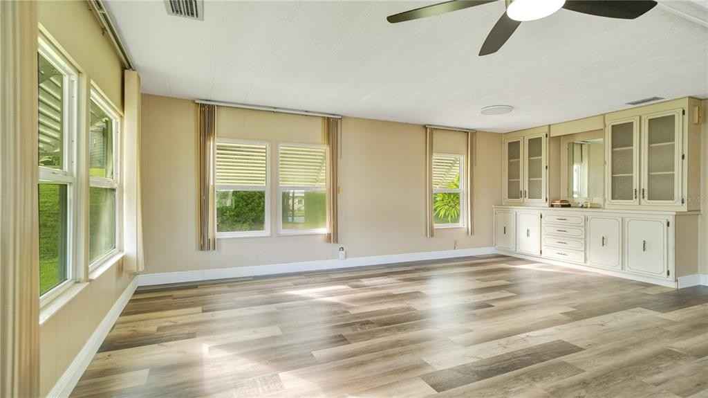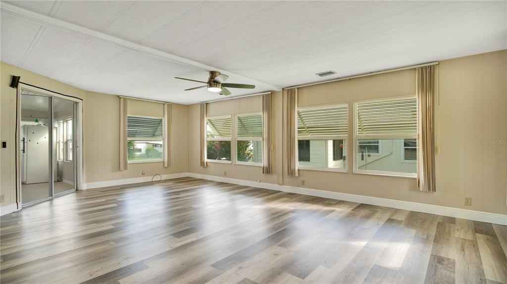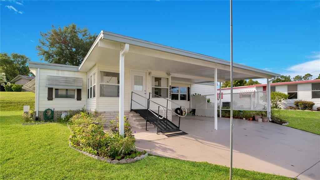 Well maintained and updated 2 bedroom 2 bath home in beautiful Zellwood Station. This is a 55+ Golfing Community with a guard gate, golf course, multiple pools, pickleball and tennis courts and a Restaurant with banquet facilities. The home reflects true homeowner pride with the following updates: vinyl flooring partial new sub flooring, new plumbing, upgraded light fixtures, renovated bathrooms, renovated kitchen, new stainless steel appliances, sprinkler system. Light, bright open floor plan with a detachable handicap ramp access, features a large Florida Room, which is open to the updated modern kitchen. The 2 large bedrooms have large walk-in closets. Conveniently located close to shopping, churches, medical facilities, restaurants and the 429 provides easy access to the attractions and airports. This home has nice sized kitchen and dining room with built in wall unit for extra storage. The large patio has a rooftop view of the area and wonderful evening sunsets. The guest bath has double entrance, from hall or the guest bedroom.