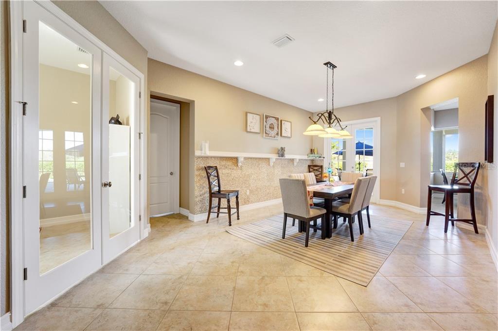 Gorgeous 4 bedroom, 3 bath home nestled on the golf course located in the gated Golf Course Community of Eagle Creek. The paved entry features French Doors that leads into the foyer and flows into the separate dining and living room with tile floors. The spacious living room features French doors that access the patio area. The gourmet kitchen features quartz countertops, stainless steel appliances, a double oven, a huge center island, 42" stacked cherry cabinets with crown trim, and a beautiful designer tile backsplash. The dinette area next to the kitchen provides a great view of the sparkling saltwater pool and the golf course. The master suite has access to the lanai and pool and features two huge walk-in closets. Eagle Creek is a gated community w/ 24hr manned gatehouse, large pool deck w/ waterfall. Centrally located to the UCF Med School, Burnham Inst & Innovations Way. Easy access to the 417 Beachline Expressway, 408 East/West Expressway, Florida Turnpike, I-4, Shopping, Restaurants and very close to the Orlando International Airport.