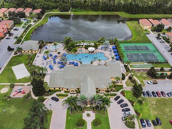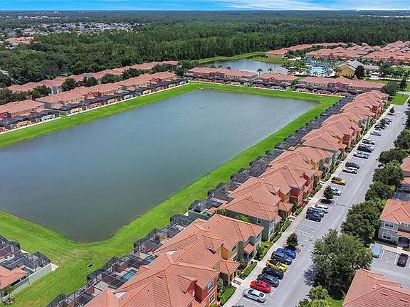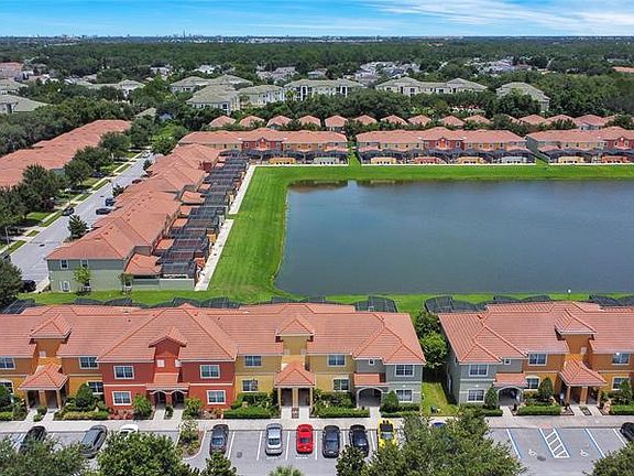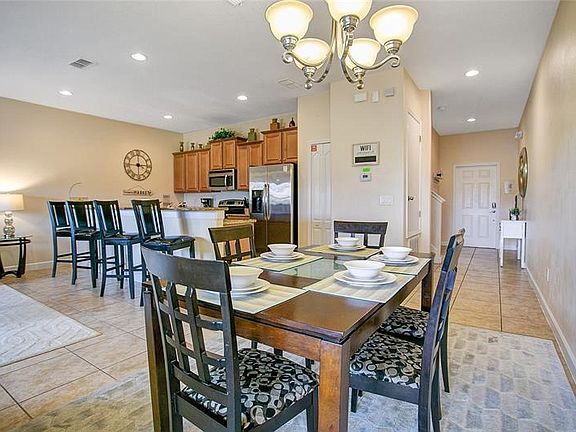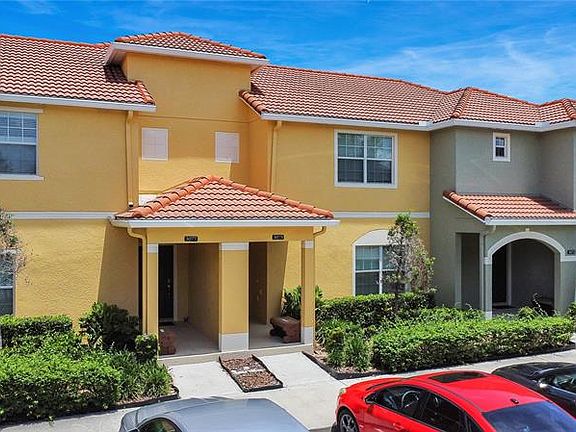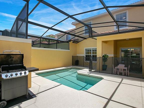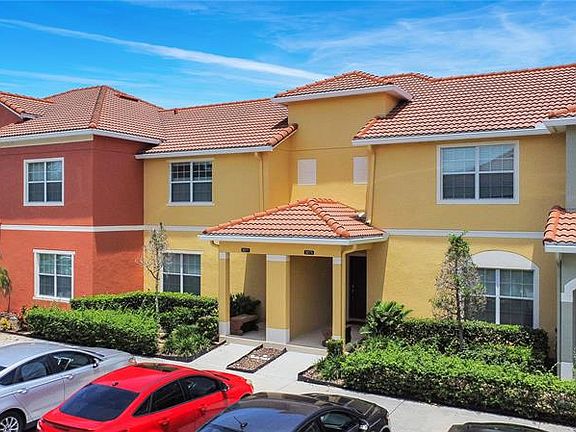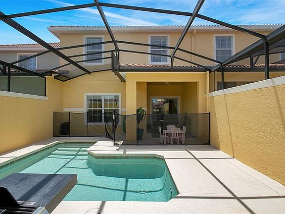 Vacation rental property or second home. Gorgeous private pool townhome located in the Gated Resort Community of Paradise Palms. This water view townhome comes fully furnished. This 4-beds, 3-baths townhome features an open floor plan with a large secondary bedroom and bathroom on the first floor. The Kitchen features a kitchen bar, tons of counter space, maple cabinets, granite countertops and stainless steel appliances. The second floor features the Owner Suite with two secondary bedrooms, large walk-in closet, and a laundry room. The private pool deck has been extended to provide ample space for relaxing & entertaining, with nothing behind you but a lake ensures the utmost privacy. Paradise Palms is one of the hottest resorts in the Disney area and a top choice for travelers. Paradise Palms Resort features some of the best vacation and resort-style amenities, including a stunning 9,500 sq. ft. Clubhouse featuring sauna, movie theatre, game room, internet lounge, basketball and volleyball courts, lighted tennis courts, state-of-the-art fitness center, resort-style swimming pool with waterfall, grotto and spa, pool slide, tiki bar and grill, splash pad, and much more. HOA fee includes resort amenities & staff, plus townhome cable, internet & phone, townhome's exterior care. Paradise Palms Resort is zoned for short term rental.